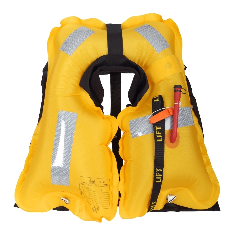 Cuando se infla el chaleco, su sistema flotabilidad se ajusta automáticamente, garantizando un ajuste perfecto para el rescatador. Ofrece un flotabilidad de 165 N y está equipado con un ligero Botella Co2 de 32 g. Su PU amarillo neón cámara está reforzado para soportar las condiciones más duras. Entre sus características se incluye una ventana de inspección para comprobar el funcionamiento del dispositivo en cualquier momento, y una hebilla de liberación rápida similar a la del cinturón de seguridad de un coche para una colocación rápida y segura.