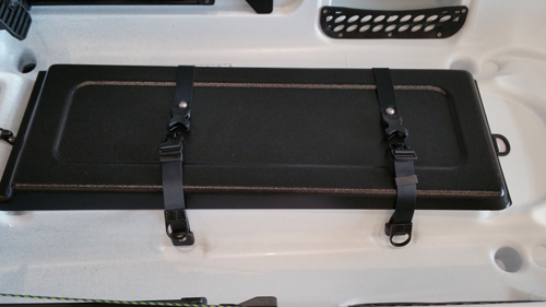 El espacio trasero puede albergar el baúl ABACO 4.20, con su escotilla de fácil acceso para el pescador. (artículos disponibles en el sitio web)