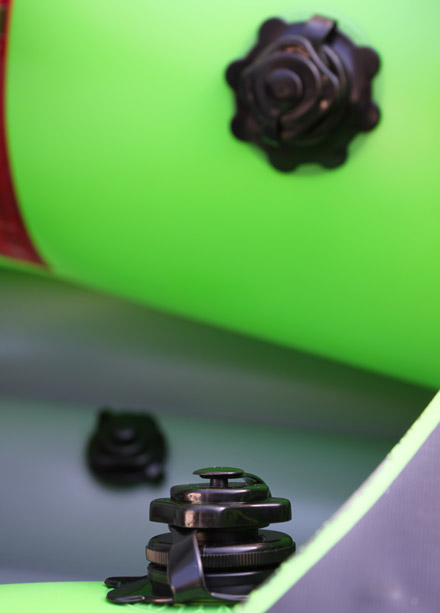 El kayak Tahití SEVYLOR tiene dos cámaras laterales (vejigas) que se inflan mediante válvulas Boston. Este sistema de válvulas, dotado de una válvula antirretorno, permite inflar y desinflar rápidamente las vejigas. También es una garantía de seguridad, ya que este sistema evita las fugas de aire.