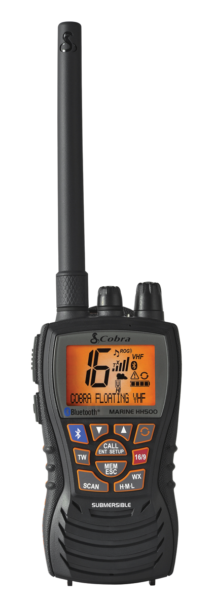 Radio vhf marina flotante resistente al agua cobra H500 para sus comunicaciones en el mar.