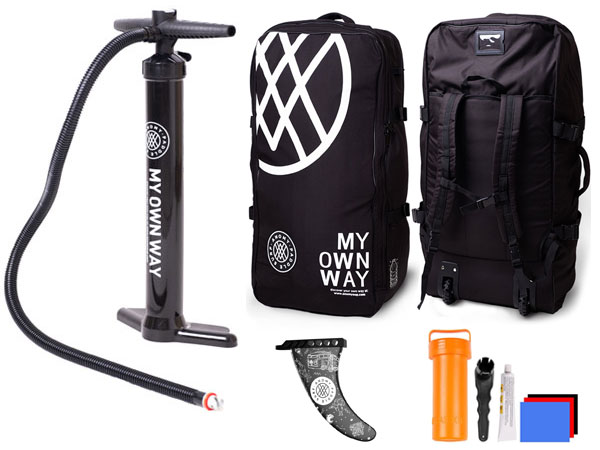Además, tu PADDLE SURF Anomy viene con una bomba HP de acción simple o doble para un inflado ultrarrápido, con manómetro incorporado.