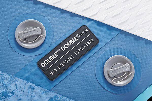 Con la tecnología de doble cámara, Aztron define nuevamente las normas de seguridad en la industria de las tablas hinchables de stand-up paddle. Dos características marcan la diferencia: la cámara interior separada asegura una flotabilidad de 50% (de la flotación total de la tabla), garantizando de esta manera la seguridad del navegante en caso de algún problema en el agua; y la cámara añadida que posee una construcción con pilares de aire adicionales y de paredes laterales en la zona donde se mantiene el usuario, lo que ayudará a mejorar la rigidez de la tabla en un 30%.