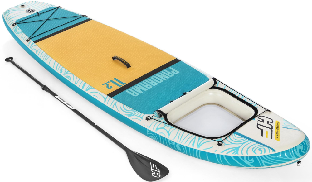 “ Descubre el mundo submarino con el nuevo remo hinchable Hydro Force Panorama de Bestway. El Panorama tiene una ventana transparente en la parte delantera que te permite ver el mundo marino mientras practicas SUP. Esta ventana panorámica te permite observar los peces y también se puede utilizar como una caja de almacenamiento para guardar una pequeña bolsa impermeable, una botella o cualquier otro equipo que necesites para aprovechar al máximo tu día. La ventana se puede cerrar con una tapa que se puede fijar al marco de velcro de la ventana.