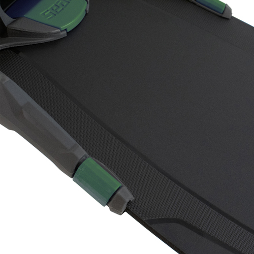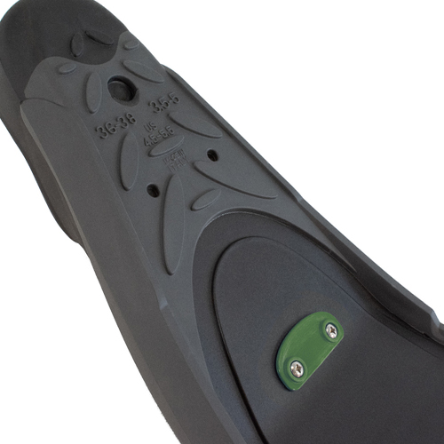 La pala de la aletas BM30 de SEAC tiene una angulación de 30°. Esta angulación acentuada es ideal para facilitar la natación en superficie, al tiempo que sigue la inclinación natural de los tobillos al bucear. Además, su perfil ultrafino y diferenciado permite una flexión óptima y reduce su peso. Unas pequeñas alas estabilizadoras, situadas en el extremo de la pala, donde el flujo de agua es más fuerte, evitan que la aleta se deslice lateralmente sin comprometer la correcta flexión del tecnopolímero de la pala.