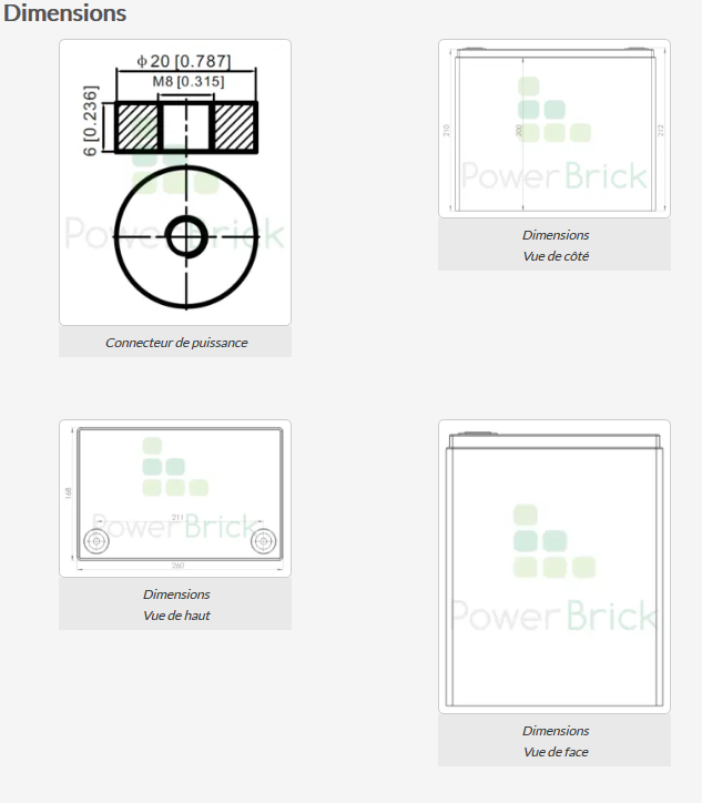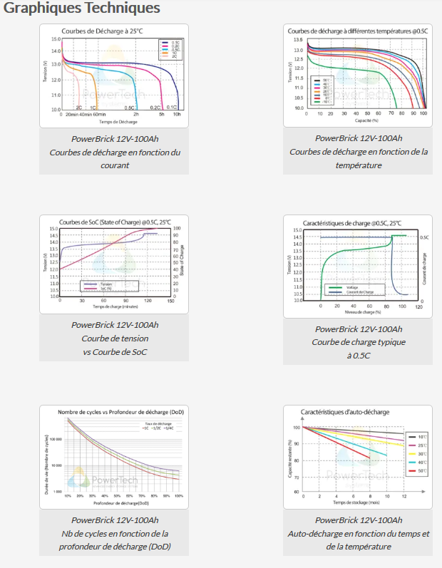 Dado que una batería PowerBrick+ puede descargarse hasta el 100% de su capacidad, una batería de plomo AGM puede ser reemplazada por PowerBrick+ con una capacidad 2 veces menor que la de la batería de plomo (por ejemplo, un PowerBrick+ 50Ah reemplaza una batería AGM de 100Ah).