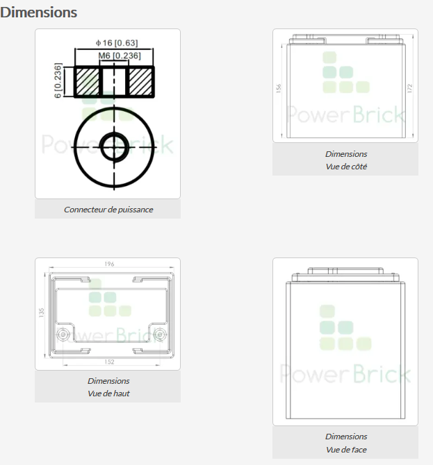 Dado que una batería PowerBrick+ puede descargarse hasta el 100% de su capacidad, una batería de plomo AGM puede ser reemplazada por PowerBrick+ con una capacidad 2 veces menor que la de la batería de plomo (por ejemplo, un PowerBrick+ 50Ah reemplaza una batería AGM de 100Ah).