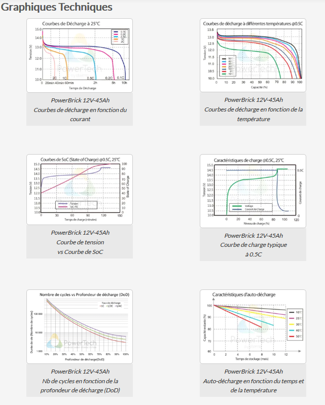 Los parámetros eléctricos de la batería de litio PowerBrick+ 12V-45Ah son compatibles en todos los aspectos con los de una batería de plomo AGM de 12V. En la gran mayoría de los casos, el sistema de carga puede mantenerse idéntico y no se requieren accesorios adicionales para su sustitución.