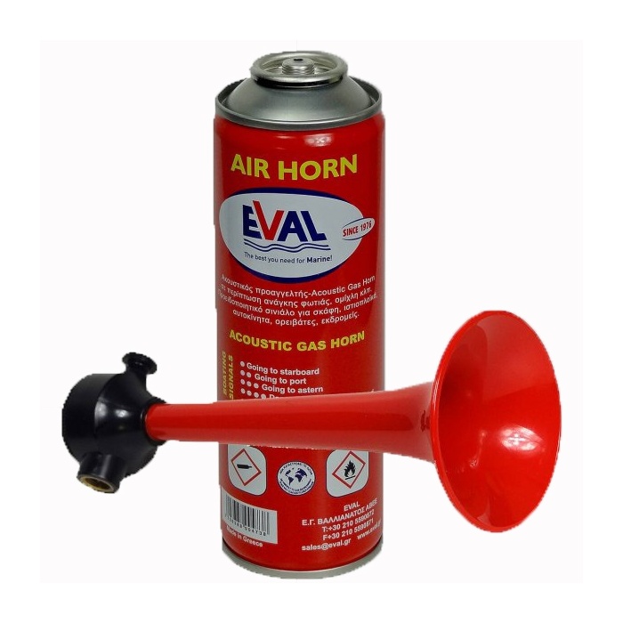 Bocina a gas - Sirena de niebla que funciona con gas licuado contenido en el cartucho extraíble - Capacidad de 300 ml.