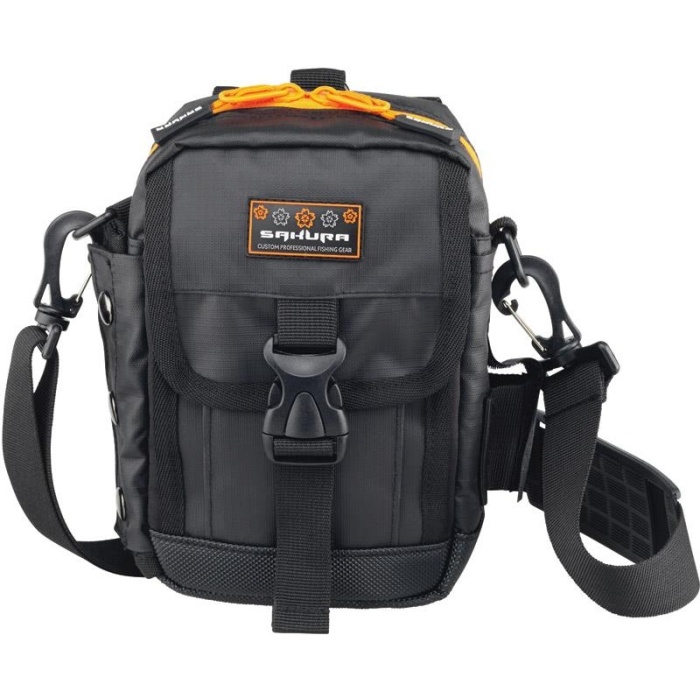 La mini bolsa de hombro tiene un compartimiento principal, con cremallera, capaz de contener una caja Sakura SK-9100, una de la serie SK-60 o la SK-RGW1.