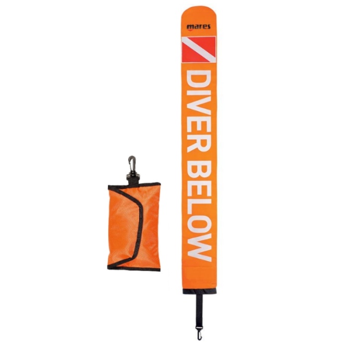 Lleva pequeñas pesas de plomo integradas en la base, que garantizan una flotabilidad perfecta y un inflado fácil. Una vez terminada la inmersión, puedes plegarla y guardarla en su resistente bolsa, que se fija fácilmente a tu equipo mediante el gancho suministrado. Esta bolsa compacta también se puede deslizar en el bolsillo de tu compensador de flotabilidad, ofreciendo un almacenamiento cómodo y seguro.
