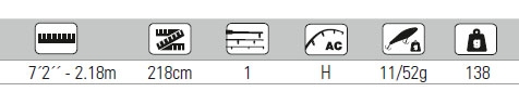 . Ideal para la prospección rápida con spinners y minnows de tamaño medio. Equipado con guías FUJI K ALCONITE. Soporte de caña de lanzar FUJI SKELETON con mango de carbono. Funda acolchada