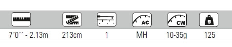 Caña de lanzar súper versátil para los pescadores que buscan calidad y pescar sin complicaciones. Acción rápida regular, sensible pero potente, ideal para jigs, spinners, Texan rigs y cranks pequeños. Equipado con anillos FUJI K ALCONITE.