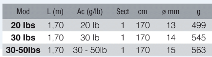 Longitud 170 cm - potencia 20 a 50 lb - monotramo - blank carbono