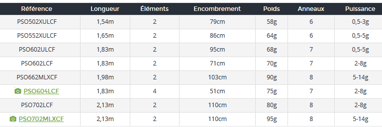 Longitud 154 a 213 cm - potencia 0,5 a 14 gr - 2 o 4 tramos - Blank carbono