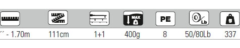 Caña de pesca - Longitud 170cm - potencia 500gr - Enchufe 1+1 - blank carbono de alto módulo 40 Tn