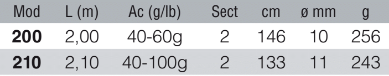 Longitud 200 a 210 cm - potencia 40 a 100 gr - Enchufe talón - blank carbono