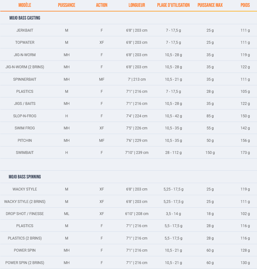 Mojo's tienen un aspecto discreto, pero su discreción no debe eclipsar sus muchas cualidades. Muy cómodas de usar, las cañas de pescar de la serie Mojo Bass se benefician de la tecnología IPC, que proporciona una acción más suave, una mayor resistencia y una mejor sensibilidad.