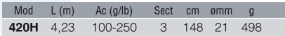 Longitud 420 cm - potencia 100-250 gr - Enchufe 3 tramos - blank carbono HM 45