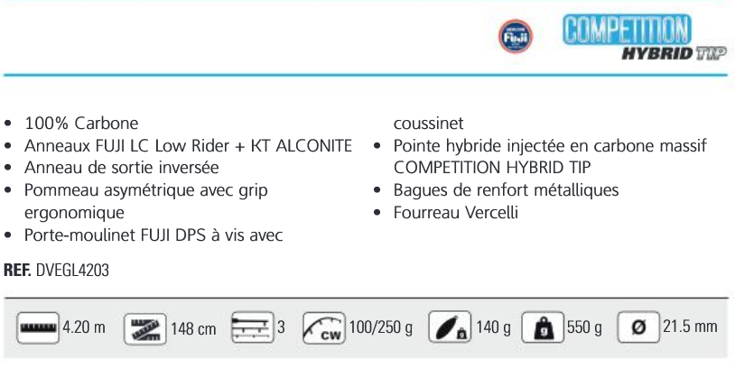 100% de carbono. Anillos FUJI KW + KT ALCONITE. Pomo asimétrico con empuñadura ergonómica. Soporte de punta atornillada FUJI DPS con almohadilla. Punta híbrida inyectada en fibra sólida SPECIALIST SENSI TIP. Anillos metálicos de refuerzo. Funda Vercelli.
