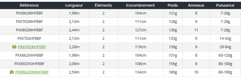 Caña de pesca casting • Longitud: 198 a 259 cm • Potencia : 7 a 180 gr • Enchufe : 2 tramos • Blank carbono HVF (High Volumen Fiber) Nanoplus X45