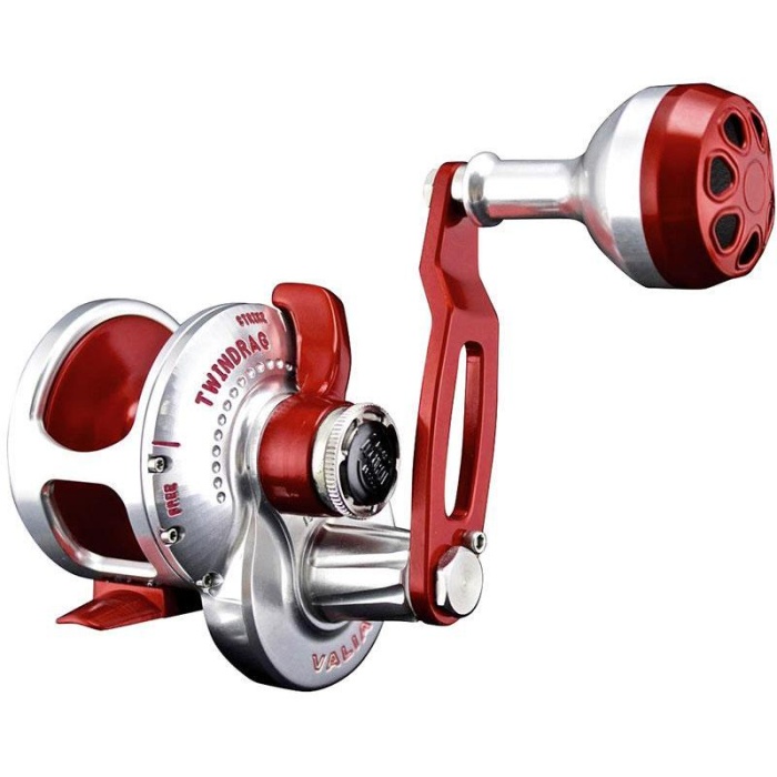 Los Valiant son carretes ligeros, muy cómodos para pescar todo el día, pero que siguen siendo potentes, con un freno mínimo de 10 lb para el más pequeño carrete. Salvo pedido especial, este carrete se vende con un manivela a la izquierda.