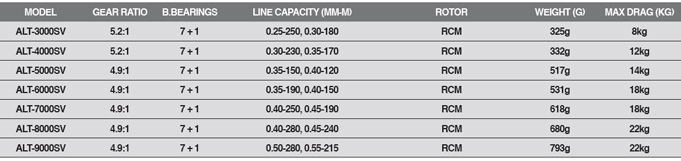 Carrete Pesca con Señuelo - Talla 3000 a 9000 - rodamientos : 7+1 - Freno 8 a 22 kg