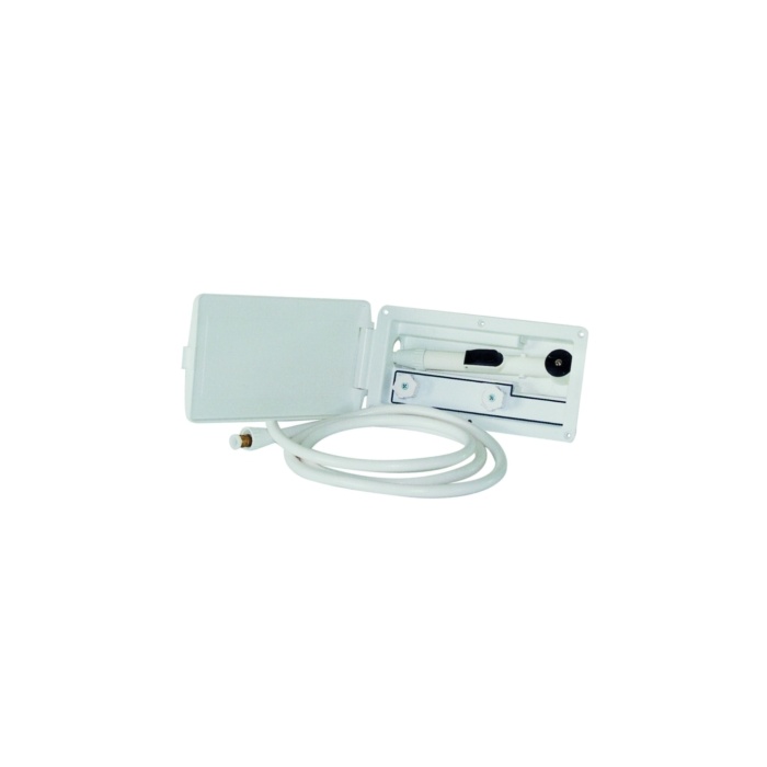 Caja que contiene: una ducha de mano, una manguera de 2,15 m, 2 grifos (agua caliente y fría).