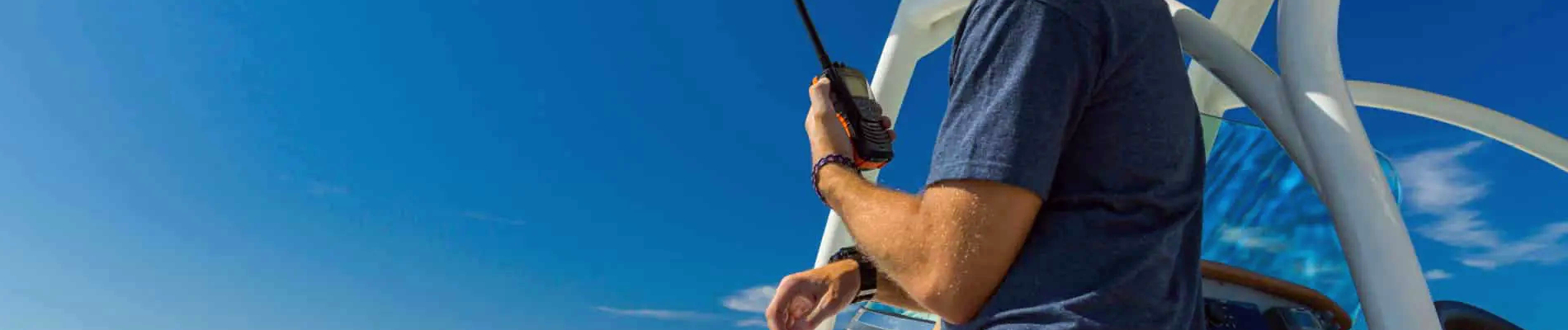 VHF marino portátil - Estanqueidad IPX-7 • Flotante • Potencia 1 a 6W • Bateria Li-Polymer 1700mA • Flash luminoso • Antena GPS integrada para el ASN/DSC • Equipado de un sistema de evacuación del agua