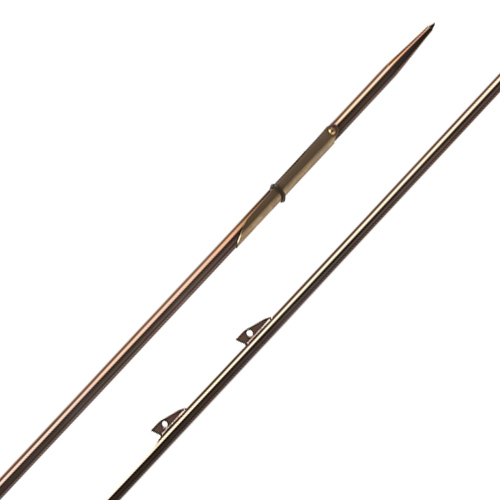 Fusil de pesca con arpón • Tubo anticorodal negro con guía varilla integrado Ø 28 mm • Empuñadura de tecnopolímero reforzado con fibra de vidrio • Refuerzo de carga en el esternón flexible intercambiable • Mecanismo con gatillo flexible de acero inoxidable AISI 316 • Pomo de seguridad lateral basculante • Cabezal para doble goma con retención magnética de la varilla