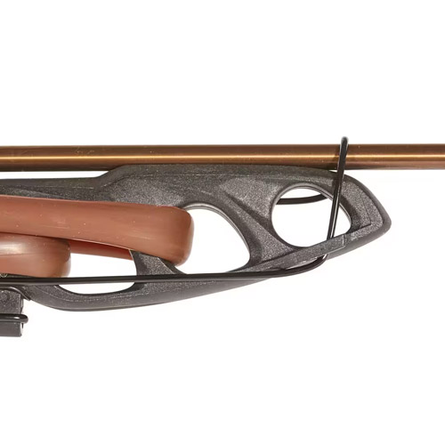 El cabezal de triple goma permite el uso de gomas fusil pesca submarina circulares, mientras que gomas fusil pesca submarina Omer Performer 2 de Dyneema garantizan una potencia óptima.