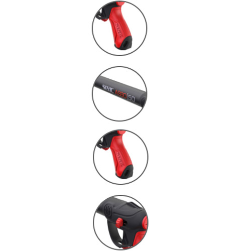 La nueva empuñadura de goma ha sido diseñada para ofrecer unaergonomía optimizada y un agarre natural, firme y sin compresión nerviosa que se adapta a todos. La nueva empuñadura garantiza tambiénun a estabilidad yun a maniobrabilidad, tanto si llevas guantes de neopreno como si no.