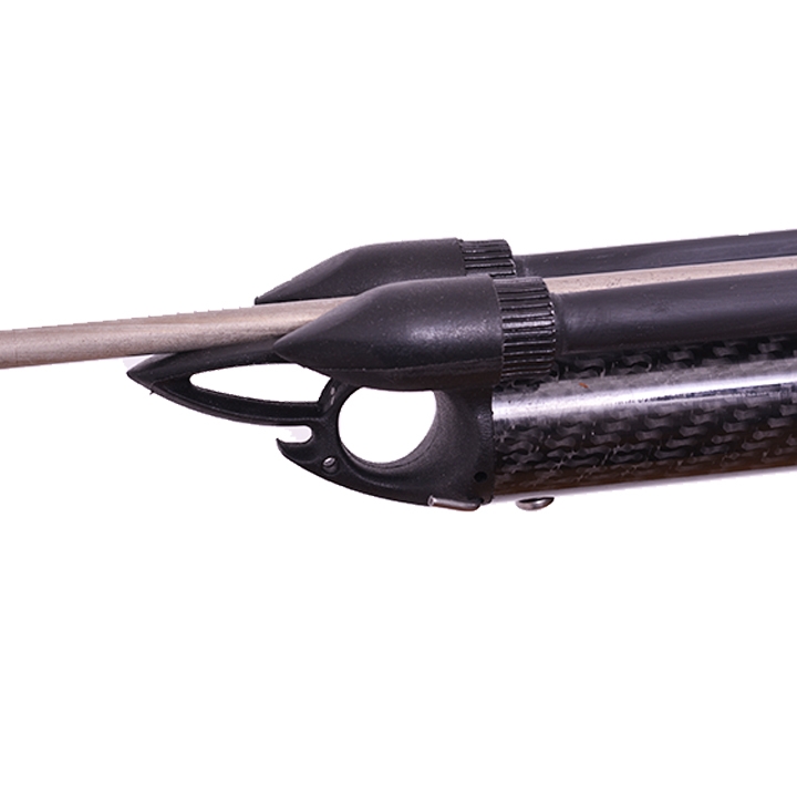 El Pathos Laser Carbon destaca en términos de precisión. Su cabezal integral guía varilla y semi abierto con paso para un goma adicional te permiten alcanzar niveles de precisión inigualables. El acero tricorte Sandvik varilla de 6,5 mm de diámetro, con muescas y un único aletilla, garantiza un rendimiento óptimo en pesca sub.