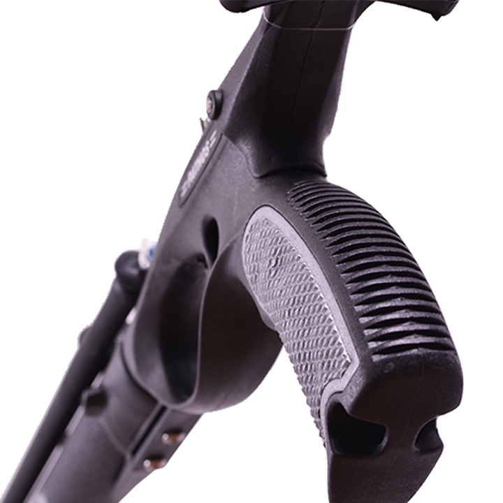 La empuñadura D'Angelo I de perfil bajo, con un mecanismo de disparo invertido, añade 7 cm extra de longitud equipo de seguridad para una mayor precisión. Su diseño ergonómico ofrece una comodidad inigualable, mientras que el soporte extraíble talón de carga y carrete te proporcionan la máxima flexibilidad. La empuñadura tubo en aluminio anodizada de 1,25 mm grosor, recubierta de piel de tiburón para minimizar la fricción, garantiza un agarre óptimo.