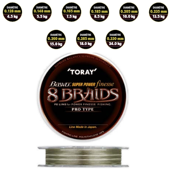 El lento proceso de trenzado y los materiales utilizados hacen de TORAY SUPER POWER FINESSE una hilo trenzado pesca con propiedades excepcionales: finura, flexibilidad, resistencia al nudo y a la tracción, trenzado ultraestrecho, resonancia, redondez... Extremadamente versátil, es ideal para técnicas en las que la finura, la distancia y la resonancia son esenciales.