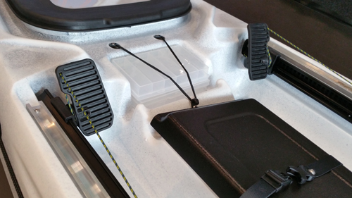 Este kayak está preequipado con reposapiés.La versión Estándar de este pack kayak de pesca Abaco 420 se entrega con el asiento Hi-confort de RTM y un fijo de aluminio remo.