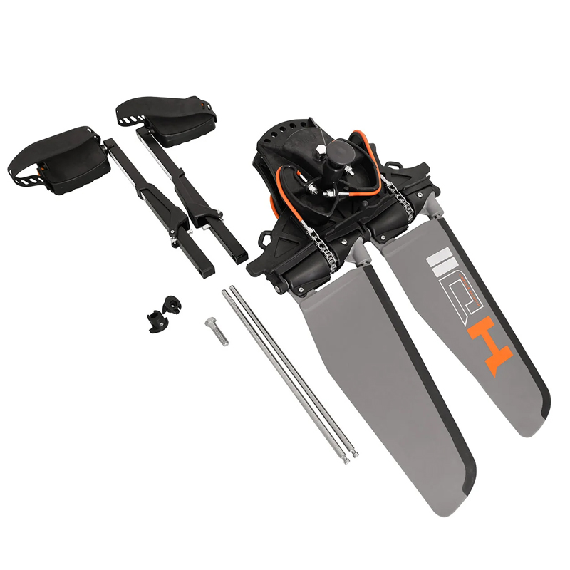 Hemos introducido una serie de mejoras en este nuevo plato, como el uso de bielas de acero inoxidable 2205, brazos de pedal de aluminio más resistentes, un diseño mejorado del piñón y un rediseño de la forma en que se montan las bielas en el núcleo. Para evitar daños en el kayak, hemos diseñado especialmente una carcasa independiente para alojar el HyDryve II. Esto garantiza que, si se aplica una fuerza excesiva al pedal, el kayak permanezca intacto y la carcasa pueda sustituirse fácilmente. El HyDryve II tiene una garantía limitada de un año e incluye pedales ajustables y correas ajustables para los pies que garantizan una posición cómoda. Además, nuestros reposapiés son de doble cara y están optimizados para su uso descalzo o con botas y zapatos. Y, aunque tienes que invertir la HyDryve II para ir hacia atrás, nos hemos asegurado de que colocar y quitar el plato sea rápido y fácil.