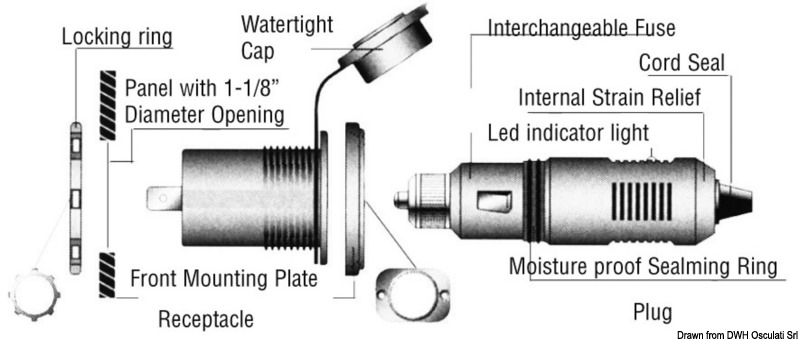 Montaje con tuerca o panel con 2 tornillos. Estándar para el encendedor de cigarrillos, teléfono móvil.
