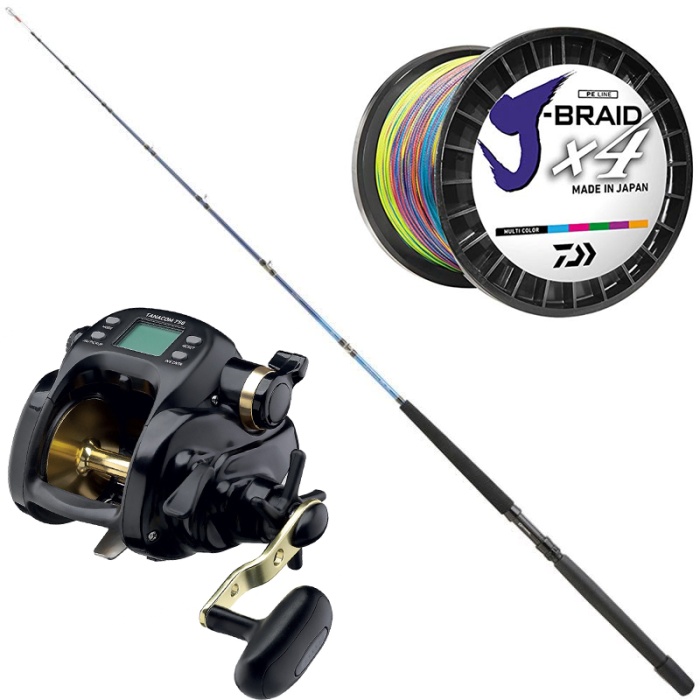 Carrete eléctrico Tanacom 750E • Caña de pesca Daiwa Tanacom Boat 180 GDF • Bobina Daiwa Braid X4 1500 m 33/100 Hilo trenzado pesca