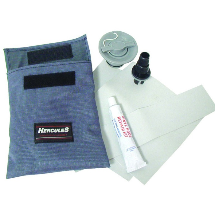 Kit completo para reparar tu auxiliar neumático. Posee un tubo de pegamento en PVC, una válvula y un adaptador y 3 bandas de PVC.