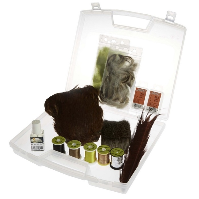 Selección de productos esenciales para empezar a montar las moscas. Complemento perfecto para los kits de herramientas.