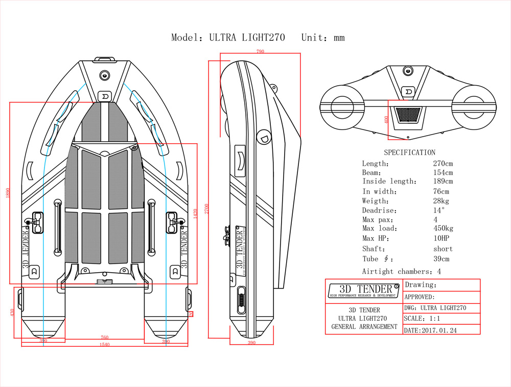Lancha neumática 3D Tender Ultra Light Rib PVC 270 + Funda de protección