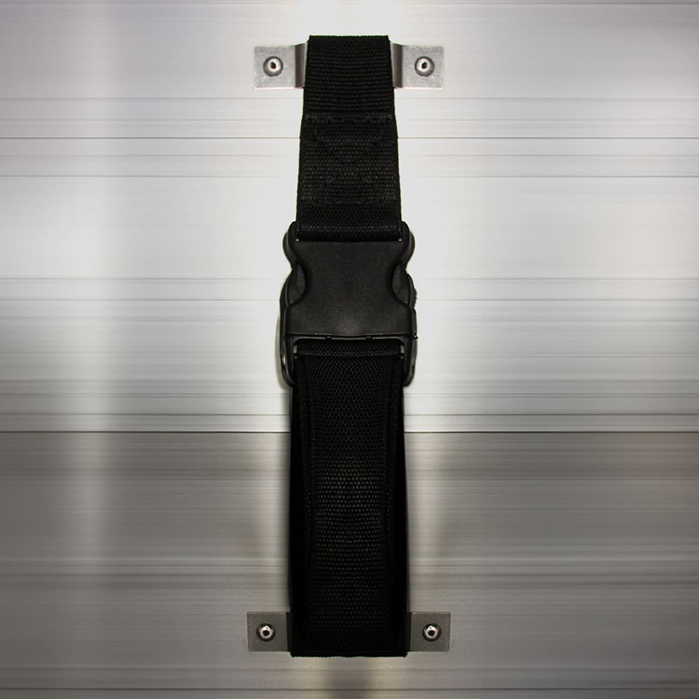 En el suelo, encontrarás una correa que se fija mediante dos orejetas directamente al suelo.