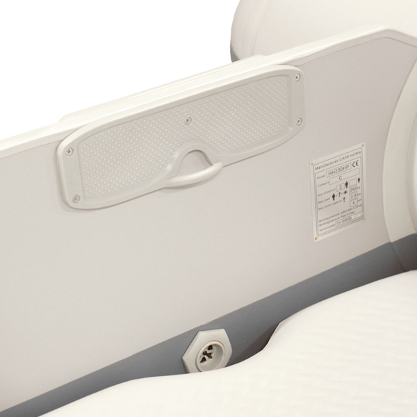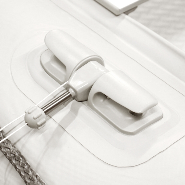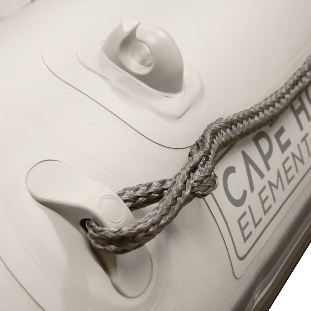 lancha neumática Cape Horn Element está equipada con una robusta lista de protección que refuerza su durabilidad y resistencia a los golpes. Situada en el perímetro de los flotadores, esta lista desempeña un papel esencial durante los atraques, ya que absorbe los roces y los impactos contra los muelles, los pontones u otras embarcaciones.