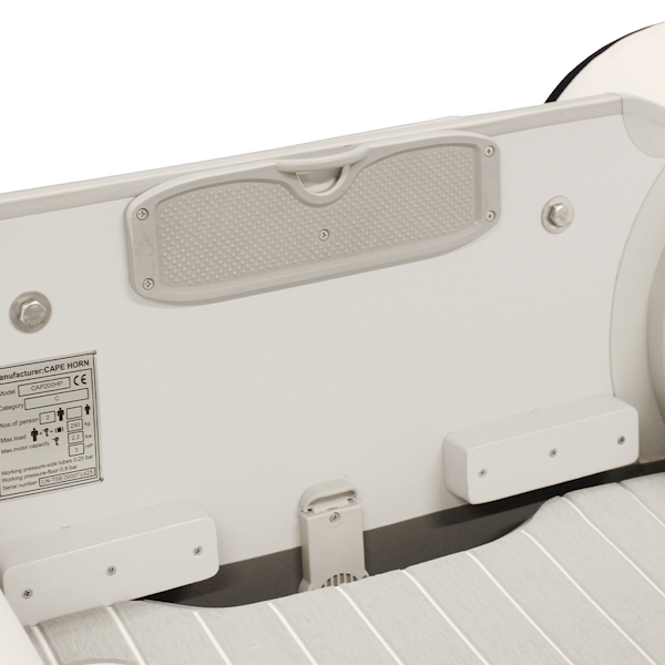 lancha neumática Cape Horn Sailor Blue está equipada con una robusta lista de protección que refuerza su durabilidad y resistencia a los golpes. Situada en el perímetro de los flotadores, esta lista desempeña un papel esencial durante los atraques, ya que absorbe los roces y los impactos contra los muelles, los pontones u otras embarcaciones.
