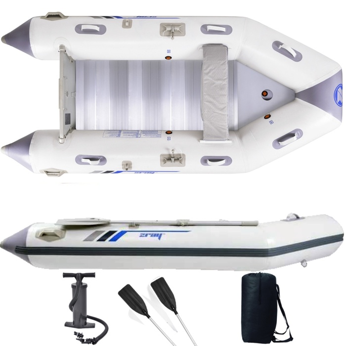 El bote neumático Zray Ranger 400 está equipado con una suelo estructura de aluminio para dar a su barco una gran rigidez y resistencia para evitar la deformación en las olas. Al ser totalmente desmontable, puede ser almacenado fácilmente. También encontrarás en el lateral del suelo bote algunas fijaciones para un tanque o una batería de motor eléctrico.