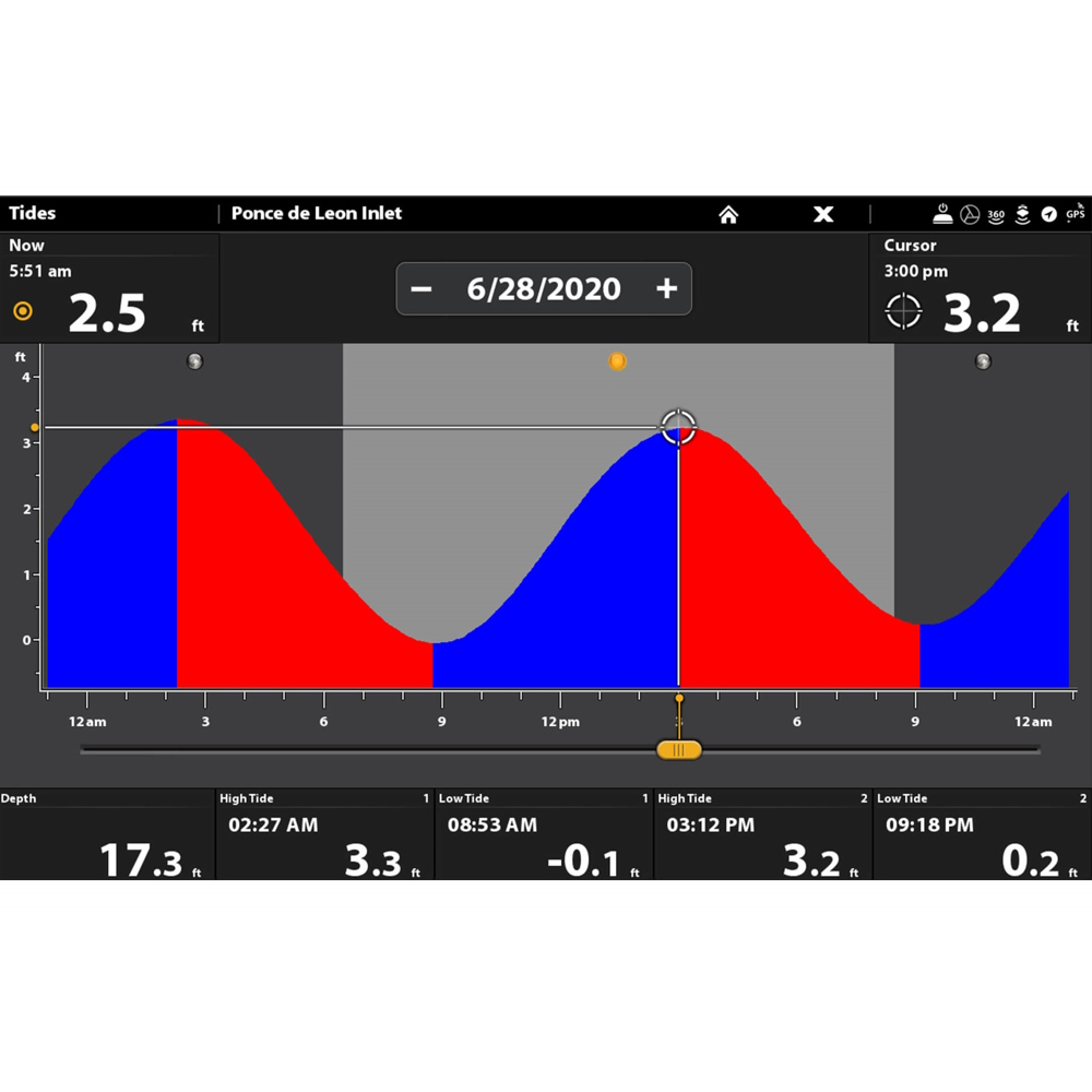 Sincroniza los contornos de profundidad y las líneas de costa de tus cartas CoastMaster con los niveles de agua reales, para que tu carta refleje el nivel de agua actual en tus ubicaciones de pesca.