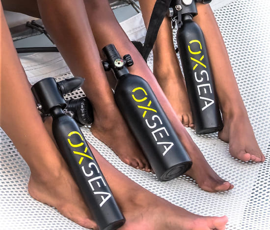 Explora el mundo del submarinismo y el buceo con Oxsea y sus equipos de calidad: máscaras de buceo integrales, mini botella de buceo, accesorios para mini botellas buceo recargables y mucho más...