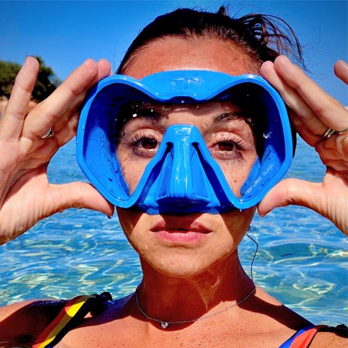 Sistema antivaho • Campo de visión excepcionalmente amplio • Faldón de silicona hipoalergénica flexible • Tecnología « Frameless » • Se entrega en caja