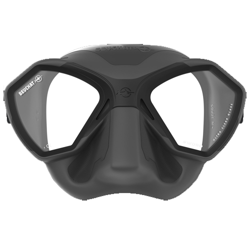 La máscara cuenta con un diseño innovador y un montaje riguroso, que integra nylon que encapsula las lentes. Este diseño crea una estructura protectora en la máscara que evita la migración del silicio a la lente durante la producción y, por lo tanto, limita la formación de vaho. Esto ofrece una vision clara durante toda la práctica.