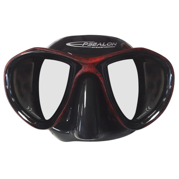 Gafas pesca submarina de volumen medio - Camuflaje Red Fusion - Amplio campo de visión hacia abajo - Silicona negra hipoalergénica - Hebillas de ajuste rápido